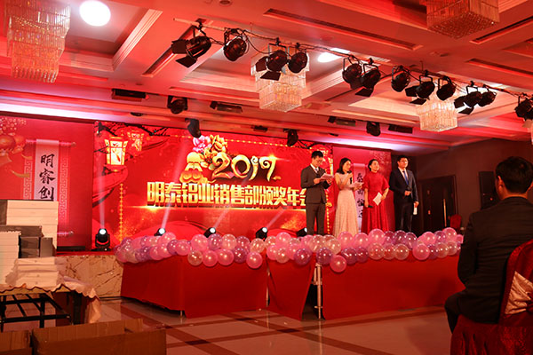 在2018年新春佳節即將到來之際,河南明泰鋁業股份有限公司舉辦了2017銷售部頒獎年會于2月8號在鞏義拉開帷幕。公司董事長馬廷義、明泰各位領導以及明泰銷售部全體員工齊聚一堂,細數流年,運籌畫策,共同開啟明泰鋁業2018新的一年。